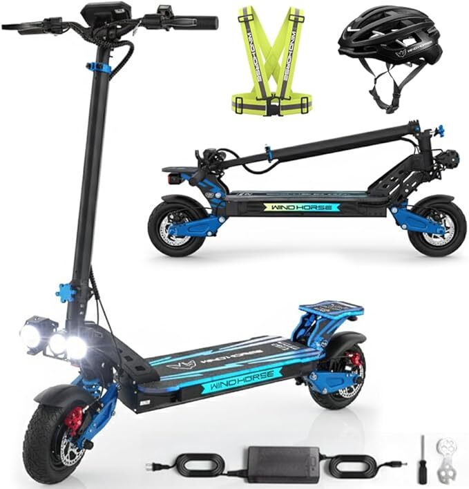 WINDHORSE H8 Electric Folding Scooter 3600W (Dual 1800W Motors), 48V 27Ah Battery, 80KM/H Speed, 65KM Range, Dual Suspension, Disc Brakes, 10x3 Inches Tires, RGB Lights, Big Digital Display